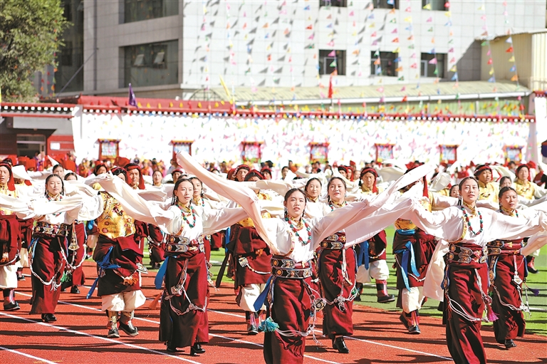 开幕式上的群众游行方队。记者 平措朗加 温凯 摄