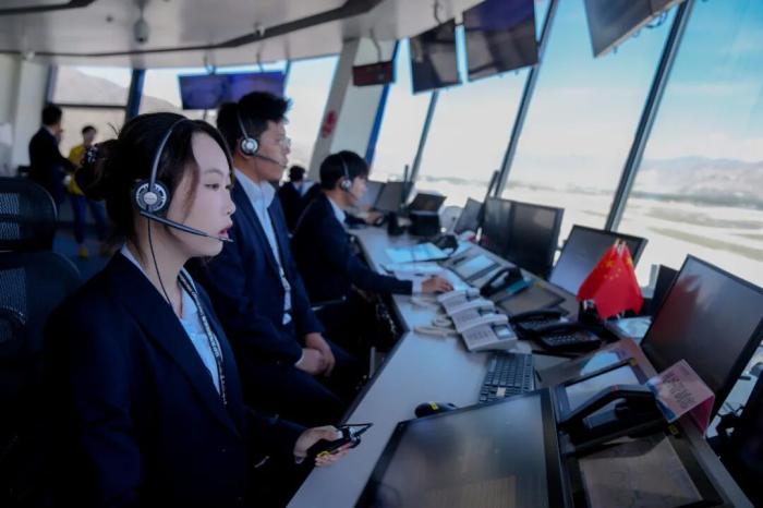 2025年7月18日,管制员在拉萨贡嘎国际机场塔台工作。中新社记者 张祥毅 摄