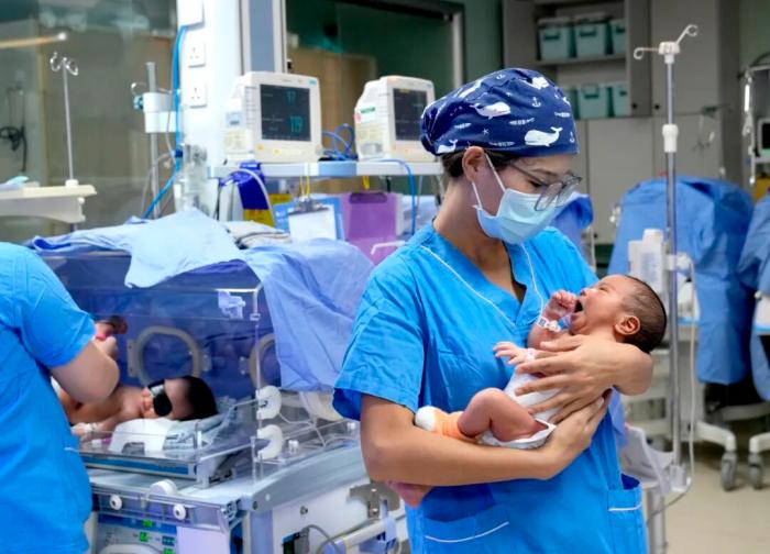 2025年9月5日,西藏拉萨,西藏阜康医院新生儿科内,护士安抚新生儿。60年来,西藏妇女儿童卫生健康水平显著提高。中新社记者 李林 摄