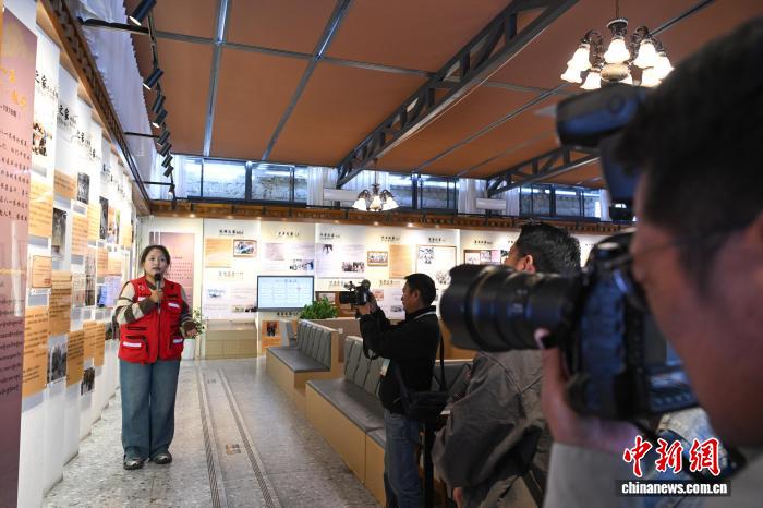图为媒体和网络名人参观八一社区家史馆。贡嘎来松 摄