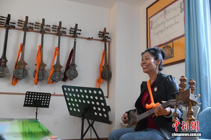 图为民次旦卓玛在八一社区老年活动中心学习扎念琴。贡嘎来松 摄