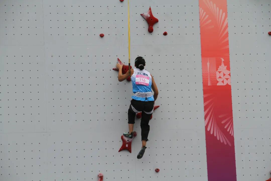 西藏队桑珠尼玛在十五运会攀岩比赛赛场上。