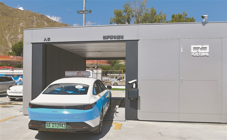 图为拉萨市首批换电新能源出租车在换电。记者 白玛泽旺 唐斌 摄