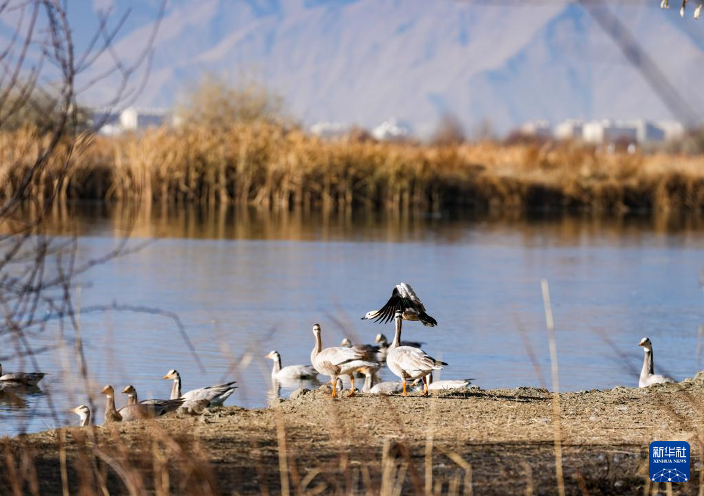 12月20日,斑头雁在拉鲁湿地休憩。新华社记者 晋美多吉 摄