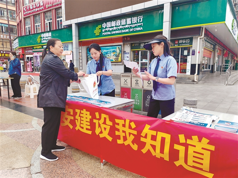 昌都市卡若区检察院工作人员在发放宣传册。记者 贡秋曲措 摄