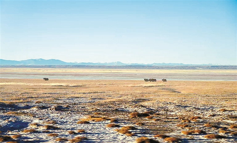阿尔金山、羌塘和三江源三个国家级自然保护区山水相连,共同构成了青藏高原最大的荒野区域,这三个保护区均以高原荒漠生态系统和大量高原珍稀野生动物藏羚羊、野牦牛、藏野驴为主要保护对象。如今,三江源国家公园已正式设立,羌塘国家公园和昆仑山国家公园正在创建之中。“看,那边为主要保护对象野牦牛,这边是藏野驴!”同行的那曲管护员指向远方,对记者说:“它们的样子,和我们家乡的几乎一样。”