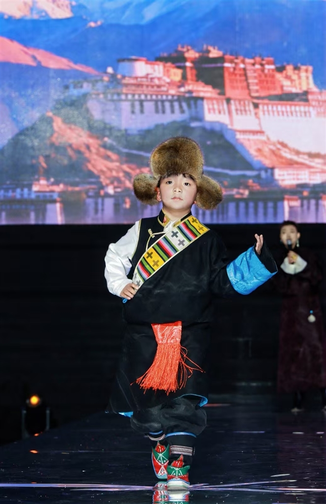 1月3日,本次服饰秀压轴活动——城市快闪服饰秀在拉萨王府井购物中心精彩上演。身着各地特色传统盛装的模特,化身行走的 “城市名片” 与 “文化使者”,让雪域华服走出园林、融入市井烟火,为整场活动画上圆满句号。(图由拉萨文旅提供)
