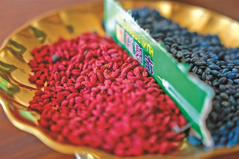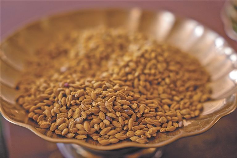 清洗后晒干上色的青稞,用于制作青稞文创产品。