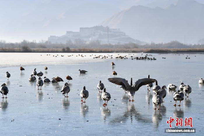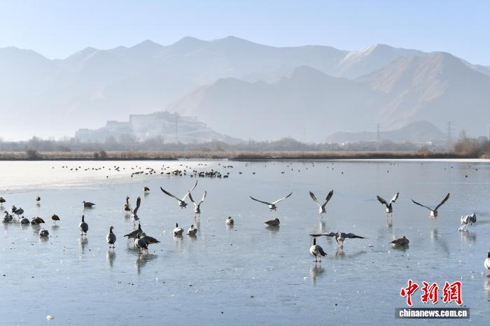 1月10日,被誉为“拉萨之肺”的西藏拉萨市拉鲁湿地,已成为候鸟的越冬乐园。贡嘎来松 摄