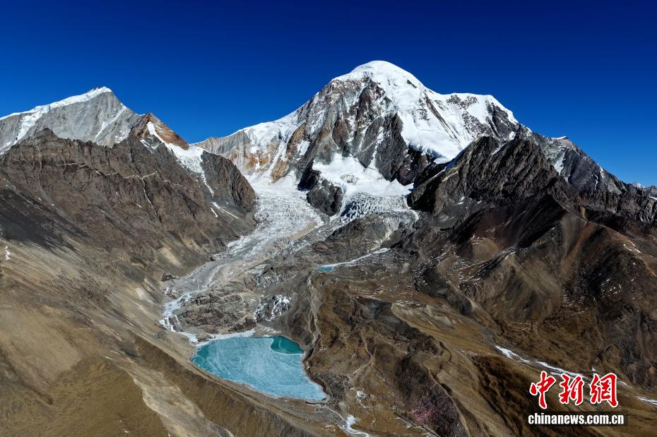 1月16日,琼穆岗嘎雪山景色。矗立于西藏拉萨市尼木县麻江乡的琼穆岗嘎雪山,海拔7048米。受冬季寒冷天气影响,琼穆岗嘎雪山脚下的湖泊结冰,雪山冰湖交相辉映,景色壮丽。中新社记者 李林 摄