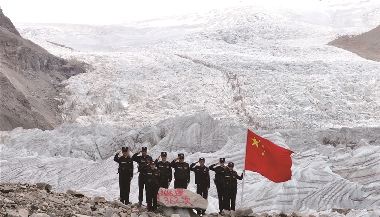 普玛江塘边境派出所民警开展冰川巡逻。 徐道超 摄图由山南边境管理支队提供