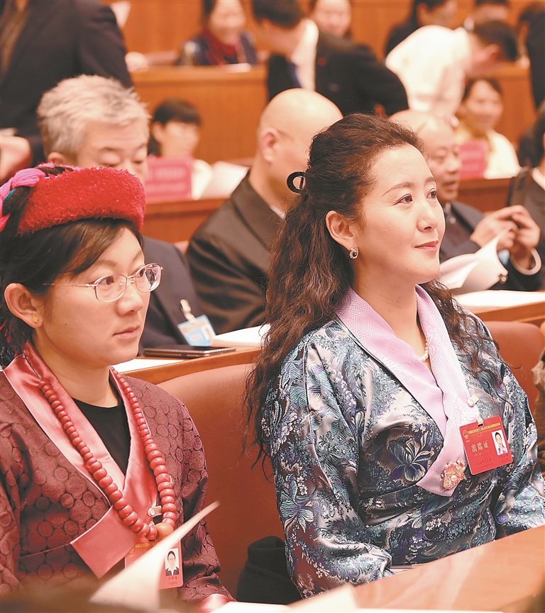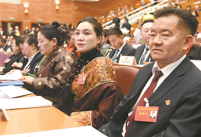 人大代表们认真聆听政府工作报告。记者 洛桑 摄
