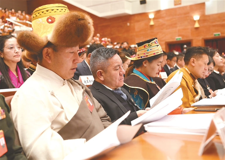 报告字字铿锵,句句有力,一项项成绩见证了西藏实干笃行、砥砺奋进的发展历程。代表们专注倾听,时而凝神思考,时而勾画圈点,会场内不时响起热烈掌声。
