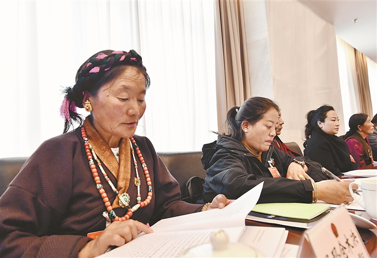 日喀则市代表团分组审议政府工作报告。记者 旦增兰泽 摄
