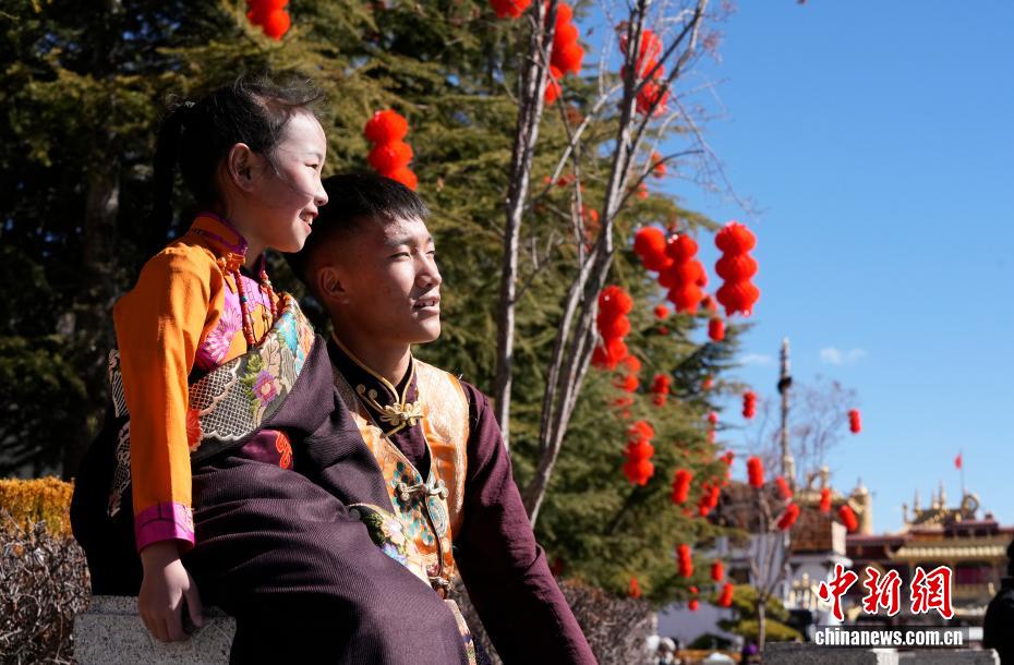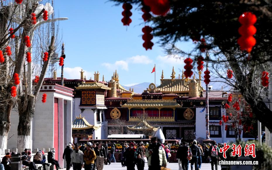 2月3日,西藏拉萨,民众在大昭寺广场拍照。随着春节、藏历新年的临近,拉萨城区大街小巷被精心装点,年味愈发浓郁。中新社记者 李林 摄