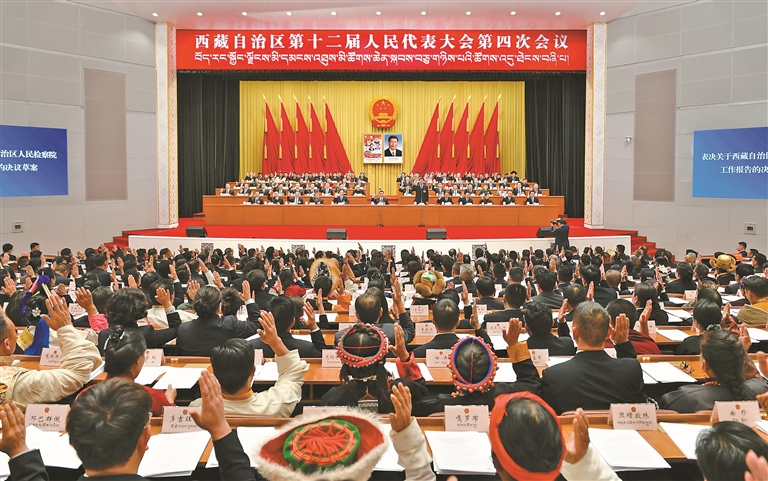 自治区十二届人大四次会议闭幕会现场。记者 次仁平措 摄