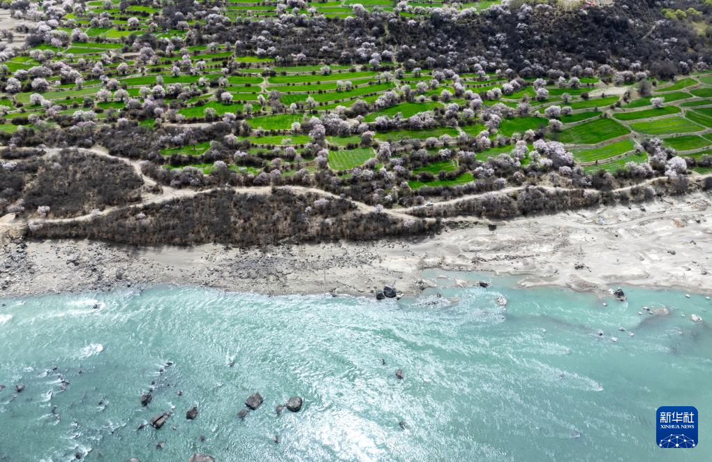 这是林芝市巴宜区朵当村桃花景色(4月2日摄,无人机照片)。新华社记者 丁增尼达 摄