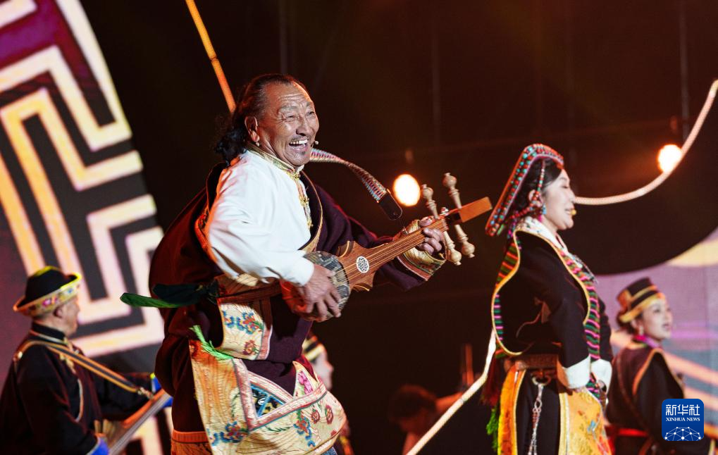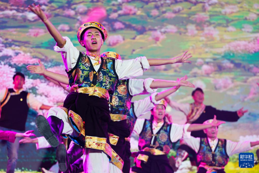这是4月3日拍摄的林芝第二十三届桃花旅游文化节开幕式文艺演出现场。新华社记者 丁增尼达 摄
