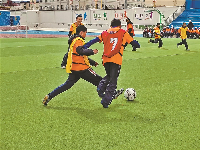 学生正在体验足球运动。