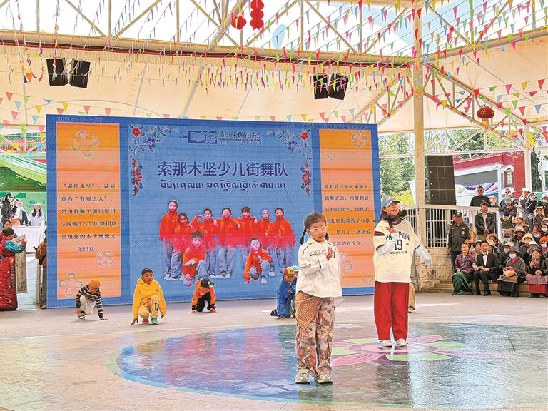 第三届“拉萨春日书会”暨拉萨市全民阅读推广周系列活动开幕式现场的少儿街舞表演。