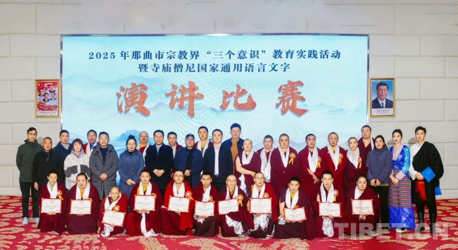 中国西藏网讯 11月13日,2025年那曲市宗教界“三个意识”教育实践暨寺庙僧尼国家通用语言文字演讲比赛举行。来自那曲市10县(区)的22名寺庙僧尼站在演讲台上,用流利的普通话畅谈学习心得、分享家乡发展变化。