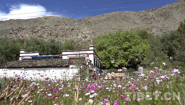 图为鲜花掩映、树木葳蕤中的西藏自治区拉萨市尼木县卡如乡卡如村(2019年9月) 摄影:王媛媛