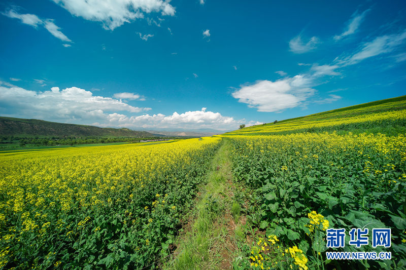 逊让乡位于青海省西宁市大通县县境南部,夏季的温度最为舒适。大片的油菜花在这里肆意开放,站在高处向下望,一片“金黄”一直连接到湛蓝的天空,风景独好。
