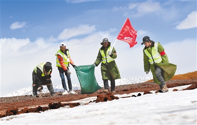 4月10日,三江源国家公园黄河源园区扎陵湖乡生态保护站尕泽村生态管护队队员正在扎陵湖畔捡拾垃圾。[详细]