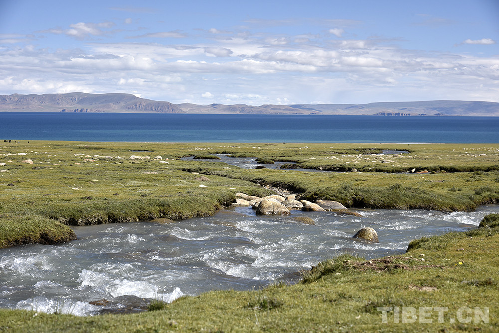 中国西藏网讯 脚踏青葱草地,头顶蓝天白云,回望湛蓝湖水。日前,记者跟随2020年中国拉萨雪顿节第十四届纳木错徒步大会来到西藏自治区拉萨市当雄县境内的纳木错,走近这片湛蓝水域,探访生活在此的牧民。