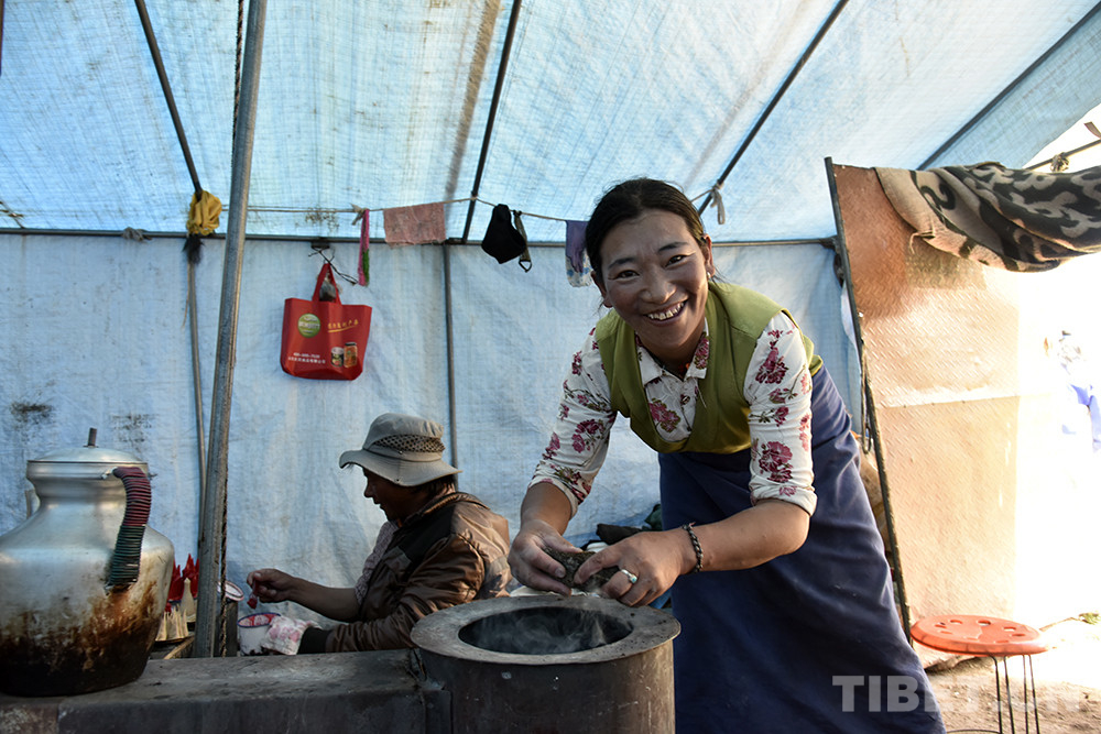图为次供的妻子白玛卓嘎在帐篷里忙碌 摄影:王媛媛
