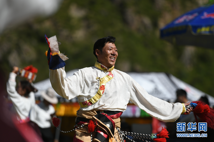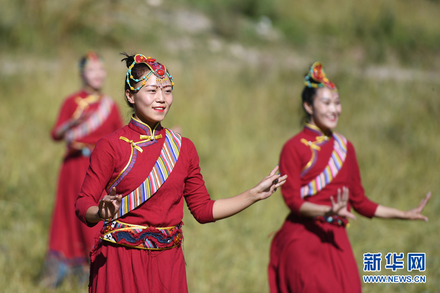 民俗文化旅游节上表演的囊谦热巴舞蹈。新华网 潘彬彬摄