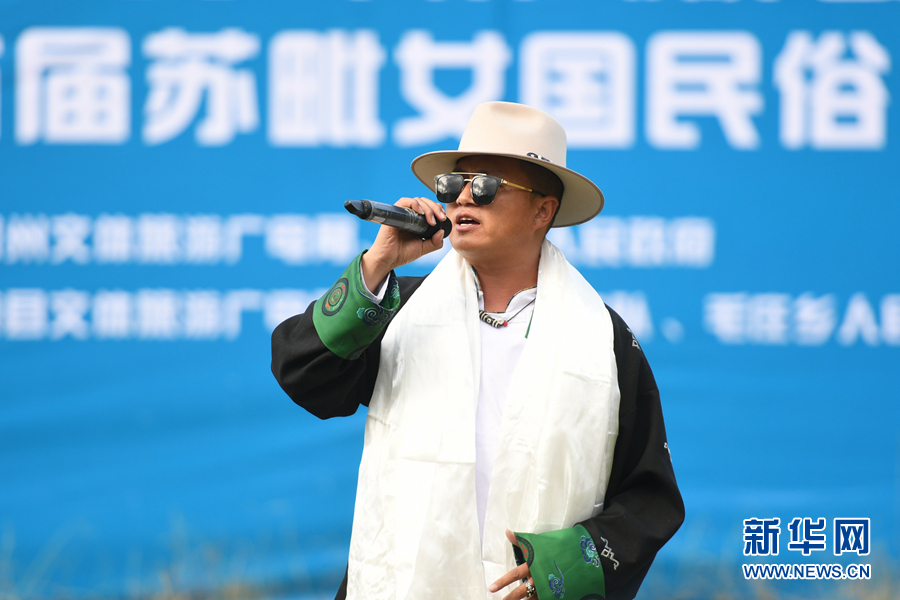 玉树州民族歌舞团歌手德勒闹吾演唱歌曲《擀毡》。新华网 潘彬彬摄