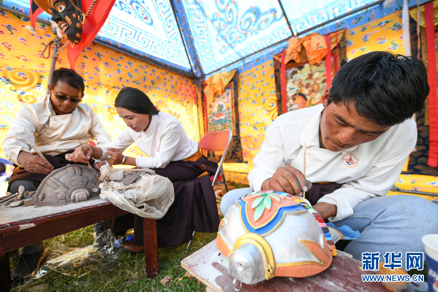 囊谦县传统面具手工艺展示。新华网 潘彬彬摄