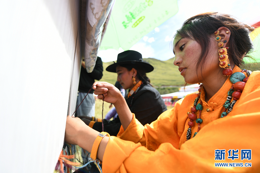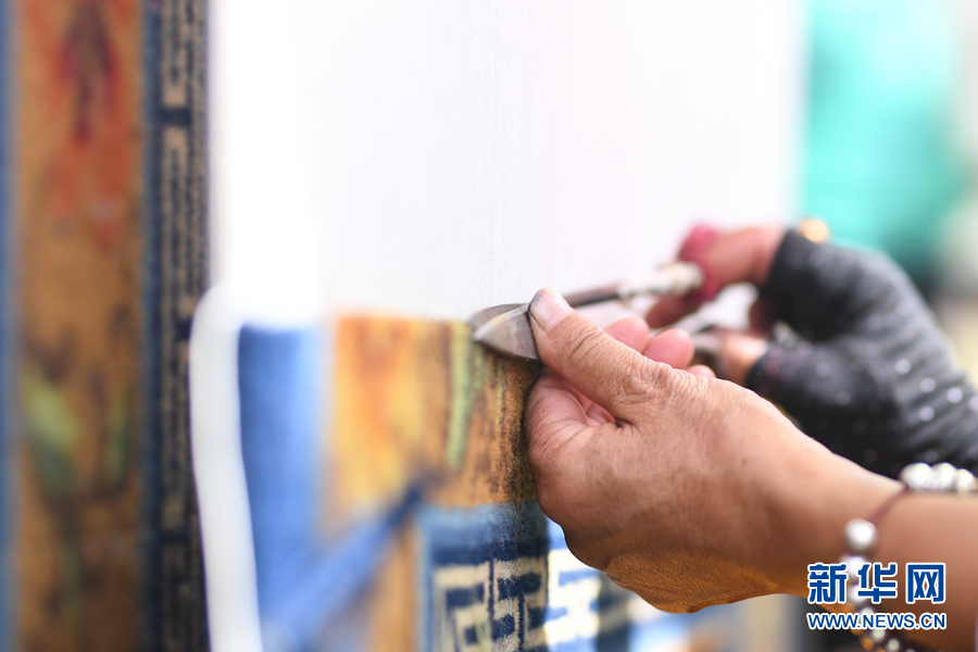 活动现场,藏毯编织手工艺展示。新华网 潘彬彬摄