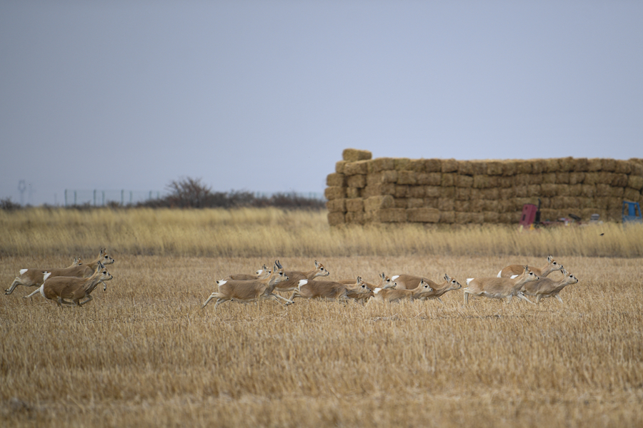 一群普氏原羚在特护区内奔跑、跳跃。(11月20日摄)新华网 潘彬彬摄