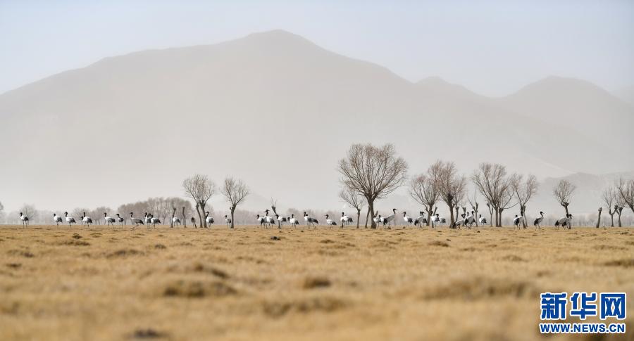 这是栖息在雅鲁藏布江流域的黑颈鹤(2020年3月11日摄)。新华社记者 晋美多吉 摄