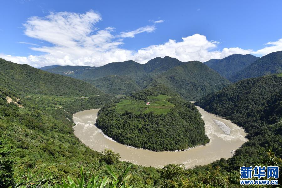 这是西藏林芝市墨脱县境内的雅鲁藏布江果果塘大拐弯(2020年8月31日摄)。新华社记者 觉果 摄