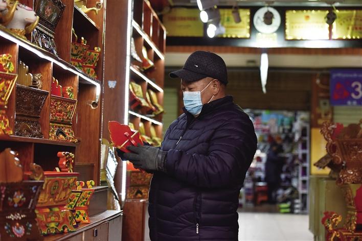 “有没有和睦四瑞图案的,给我看看。”“好嘞。”店主一边打开盒子,一边告诉记者,自己家的酥油花一对卖100元,如果购买者有需要也可接受定制,但要额外收取加工费。