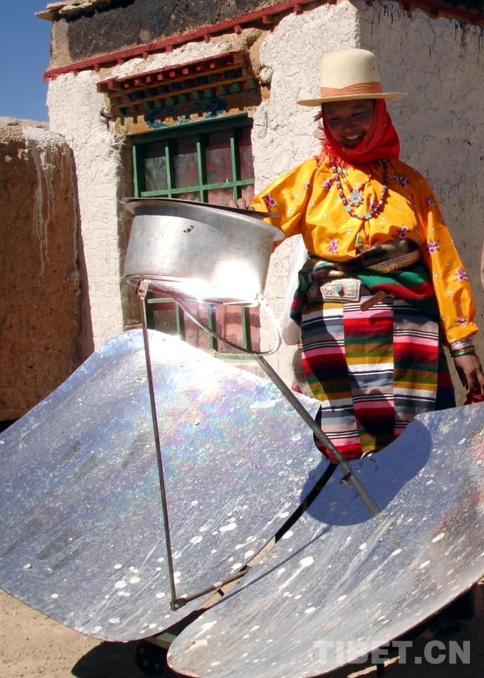 图为这是藏北申扎县牧民群众在使用太阳能灶烧水煮肉 唐召明提供,2005年10月13日摄