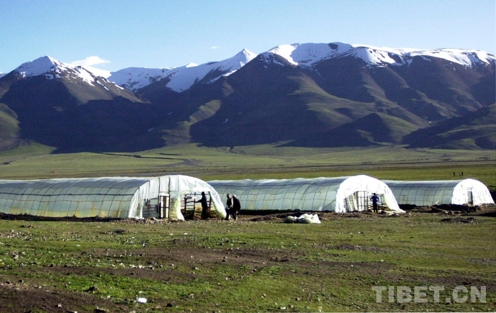图为藏北申扎县城附近新建的太阳能蔬菜大棚,解决了当地群众吃菜难的问题 唐召明2001年7月4日摄