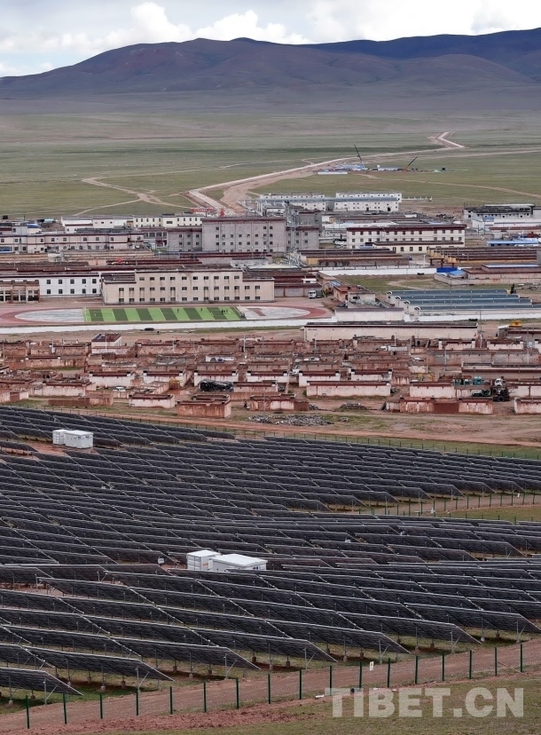 图为藏北双湖县新建成的太阳能光伏电站。照片前景所竖立的成片黑色板是用来发电的硅光电池板 唐召明2017年7月25日摄