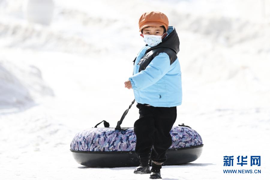 2月4日,一名小朋友拉着雪圈前行。新华社记者 吴刚 摄