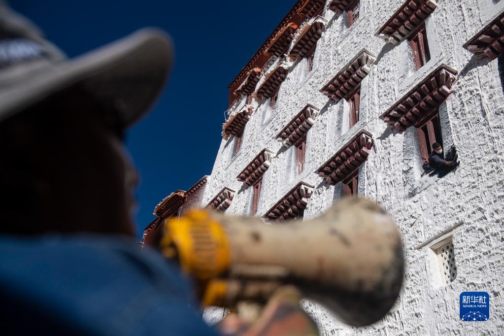 10月21日,工作人员进行布达拉宫年度粉刷工作。新华社记者 孙瑞博 摄