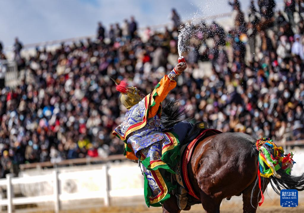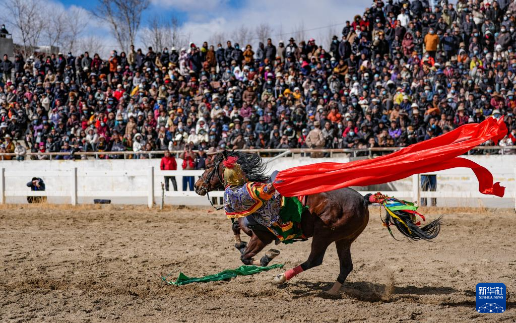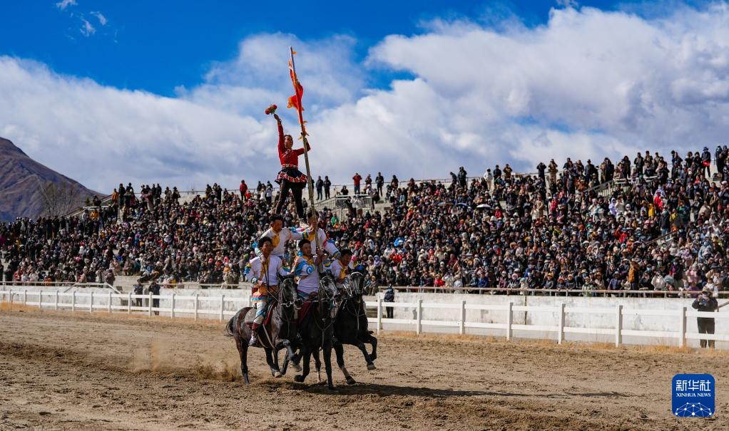 当日,2025年藏历新年初三民族传统马术表演暨民族赛马活动在拉萨市北郊赛马场举行。马术在西藏是吉祥、勇敢和智慧的象征。骑手们用精彩表演为观众送上新年的祝福。