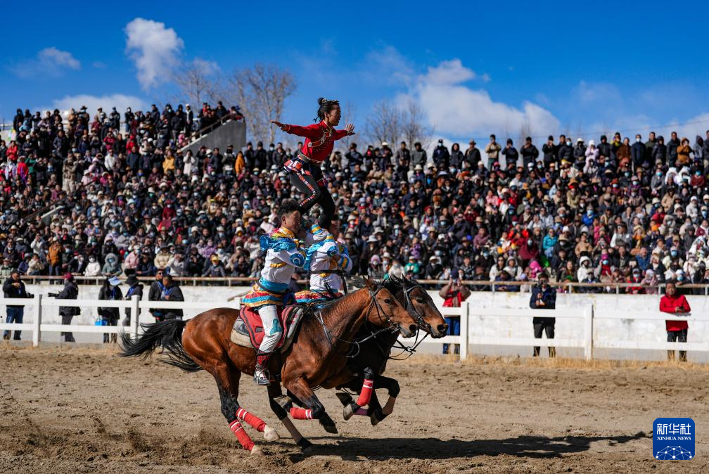 3月2日,马术队员在表演传统马术项目。新华社记者 晋美多吉 摄
