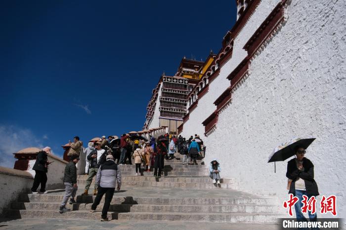 3月18日,参观游客和朝佛信众等拾级而上,登高前往布达拉宫。中新社记者 江飞波 摄