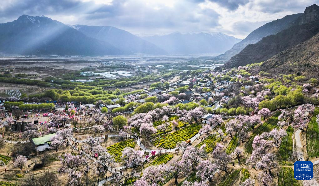 这是在林芝市巴宜区嘎拉村拍摄的桃花(3月29日摄,无人机全景照片)。新华社记者 齐芷玥 摄