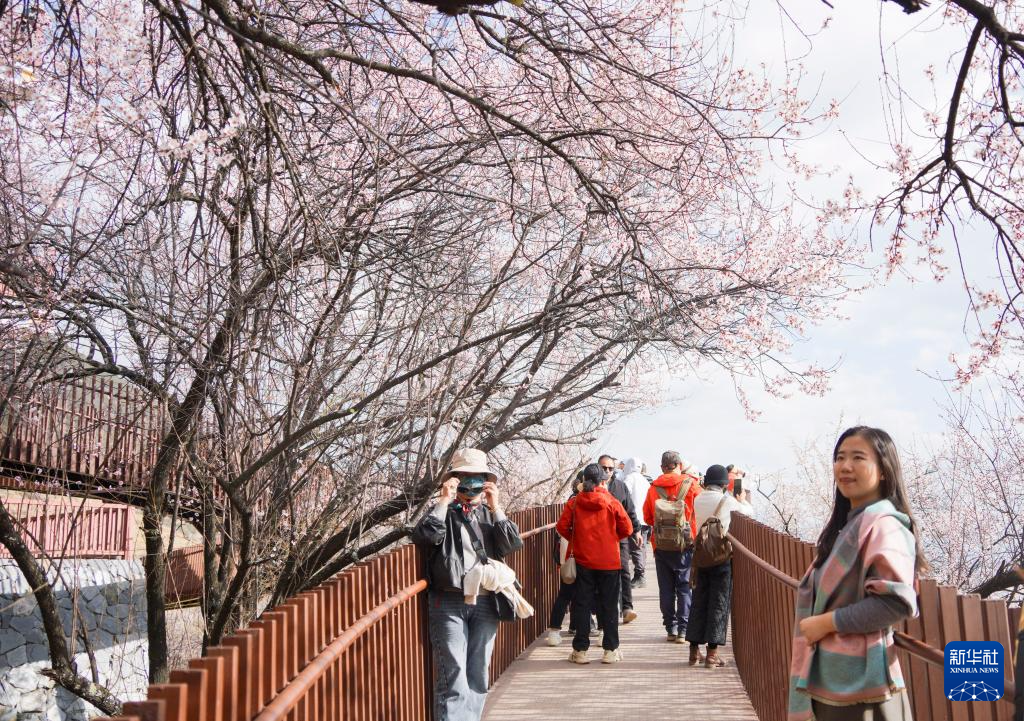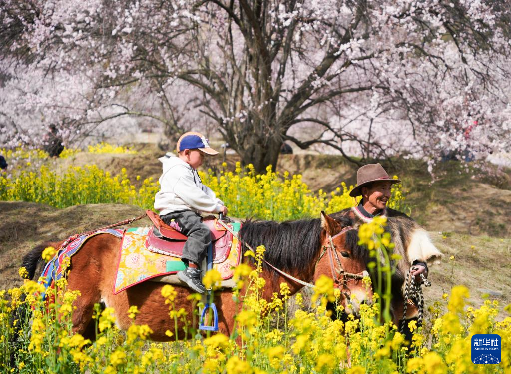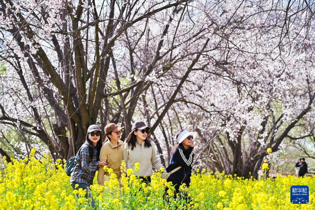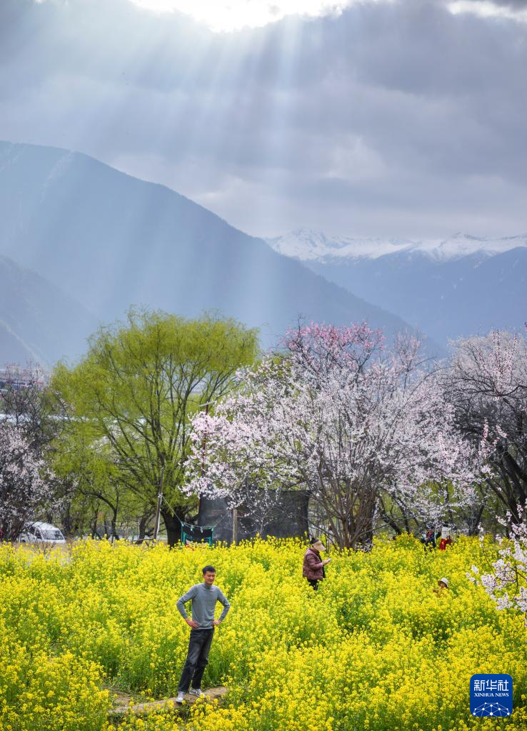 3月29日,游客在林芝市巴宜区嘎拉村赏花游玩。新华社记者 齐芷玥 摄