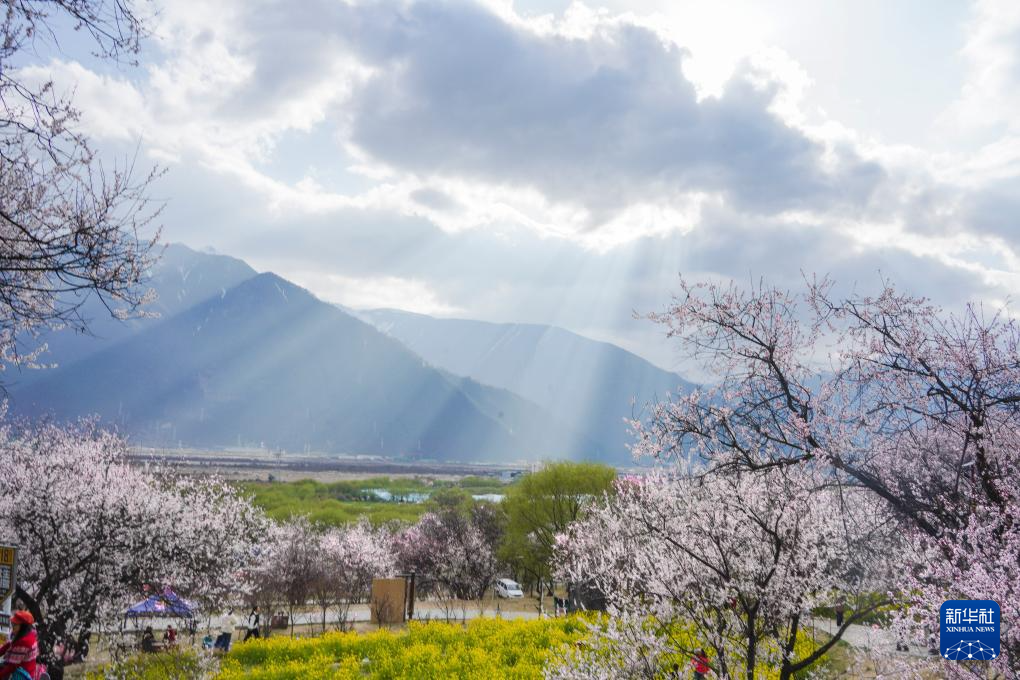 西藏林芝市被誉为“雪域江南”。近日,随着天气回暖,桃花竞相盛开,吸引众多游客前来赏花,感受春天的气息。