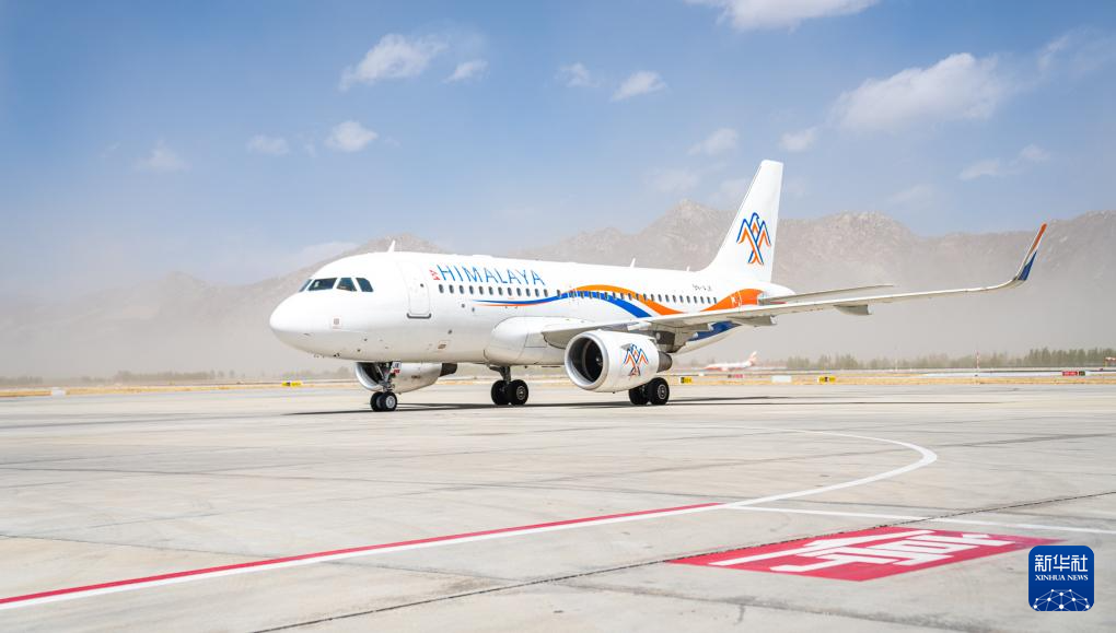 3月31日,执飞拉萨至博卡拉航线首飞任务的喜马拉雅航空H9731次航班抵达拉萨贡嘎国际机场。新华社记者 丁增尼达 摄